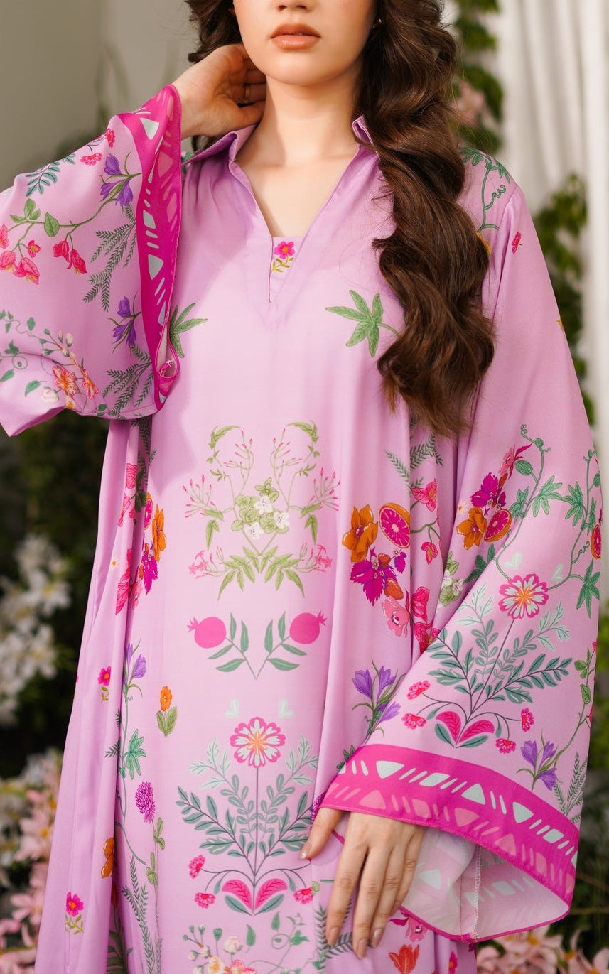 - Relaxed A-line kaftan silhouette with flowy elegance