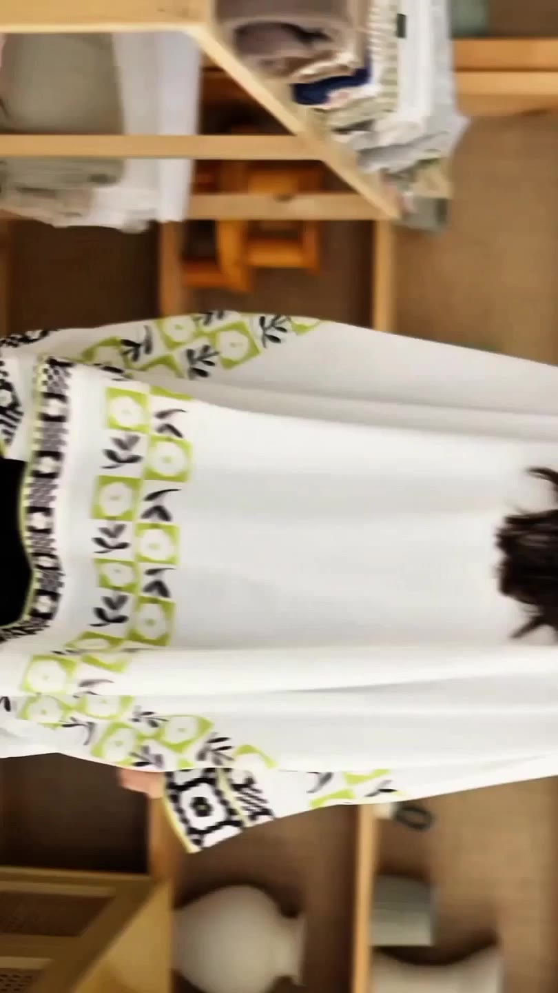 · Wide full-length sleeves with coordinated printed borders