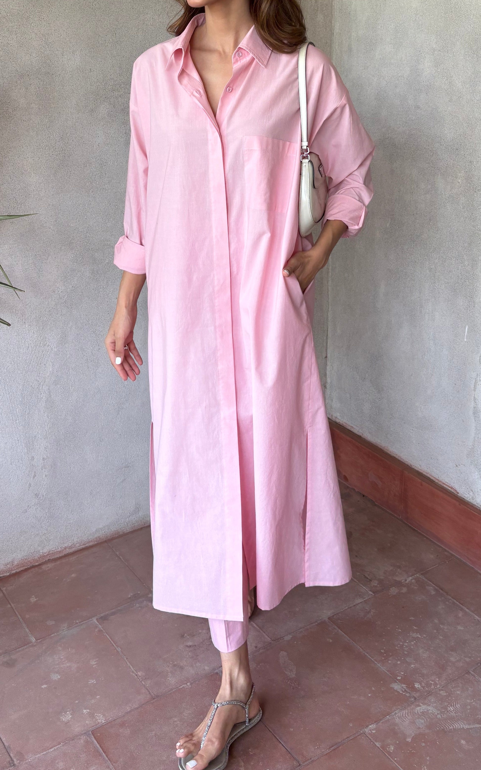 · Style: Minimalist shirt-collar kaftan with button-down detail